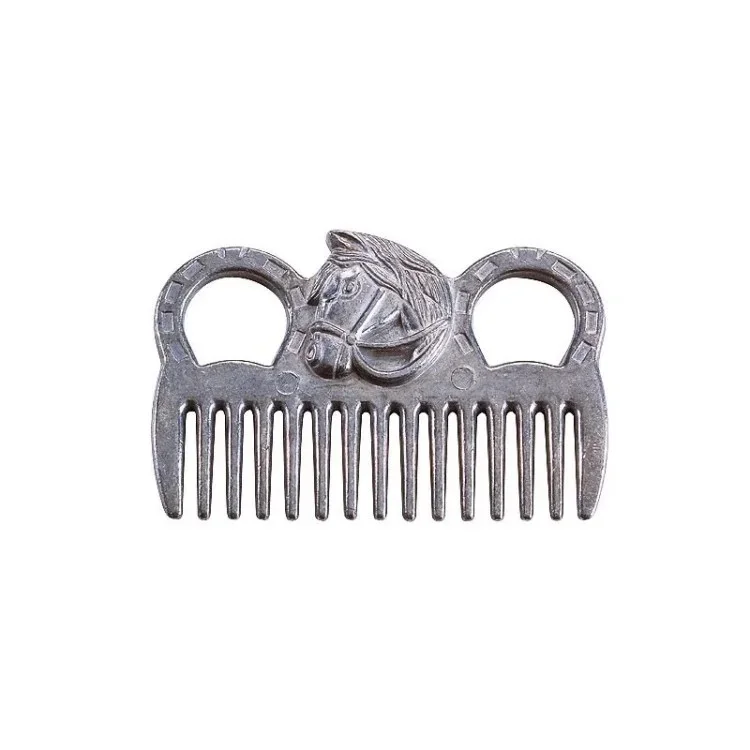 Peigne à queue Hippotonic aluminium en forme de tête de cheval.
