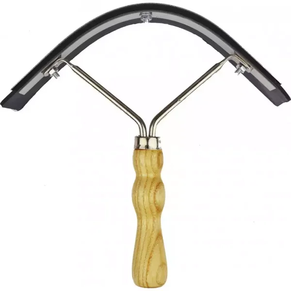 Support métallique et manche en bois vernis. Lame biface : caoutchouc 50 mm/métal 10 mm.