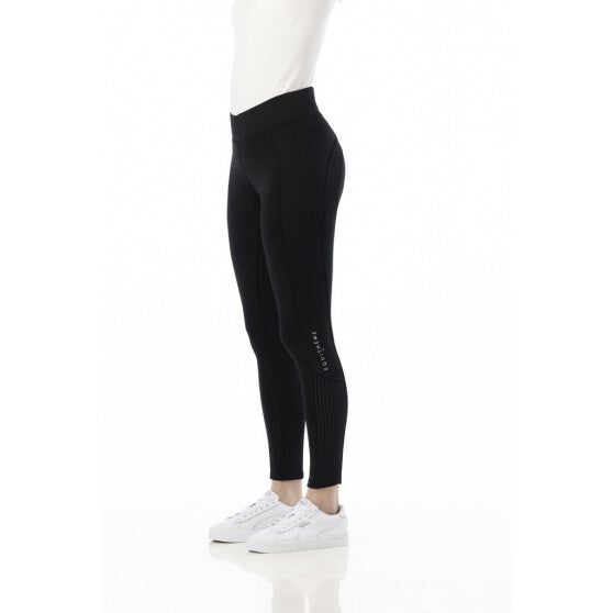 Très sobre, le Pull-on EQUITHÈME Brigitte fond silicone est décoré d'un marquage EQUITHÈME sur le bas de la jambe gauche et sa poche de téléphone est rehaussée d'un liseré blanc.
